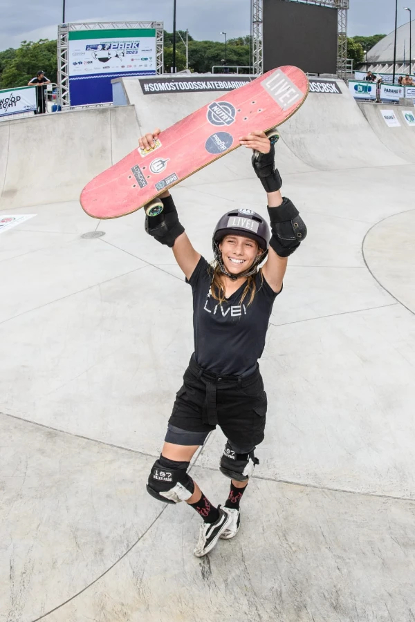 A trajetória competitiva reforça essa evolução. No surfe, ela chegou ao topo do estado como Campeã Catarinense Sub-16 e vice-campeã Sub-14. No skate, a ascensão foi rápida e consistente, com títulos estaduais, o título de Campeã Brasileira Amadora de Skate Park, protagonismo nos Joguinhos Abertos representando Itapema e, em 2025, o passo mais importante até aqui: a profissionalização pela CBSk, entrando no circuito Pro e já conquistando resultados de destaque em etapas nacionais.